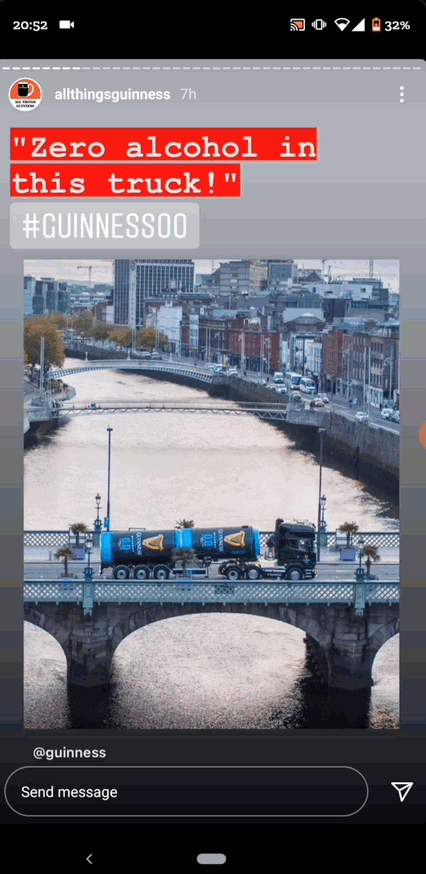 Idea: We played into the iconic nature of the Guinness with the idea that alcohol free Guinness is still ‘100% Guinness’ just with none of the alcohol. This thought was executed by showing the visual beauty of the liquid that pours, surges and settles just like your usual Guinness and with lines like “Not drinking Guinness? There’s a Guinness for that.” and “The Guinness to drink when you’re not drinking Guinness”.